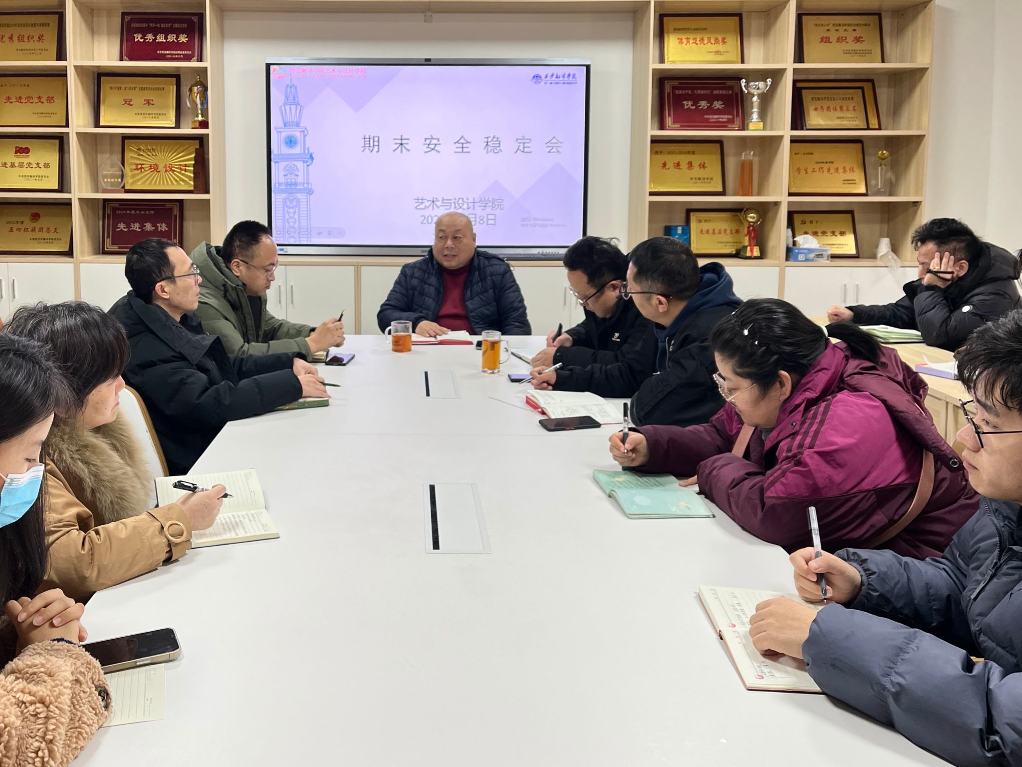 1月8日上午,艺术与设计学院在会议室召开学院安全工作专题会议,学院院长董千、党委书记行政副院长徐中、副院长吴迪,综合办全体成员参加会议。
