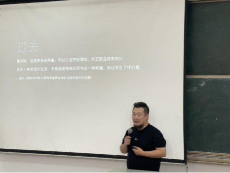 陕西集汇骏建实业有限公司创始人刘博杰以《当下设计行业的发展方向应在何方》为主题,从行业现状、市场趋势等方面为学生们提供了宝贵的建议。他指出,设计行业正迎来前所未有的发展机遇,但同时也面临着诸多挑战。设计师需要紧密关注市场动态,结合市场变化趋势的逻辑找到适合自己的发展方向。此外,刘博杰老师还强调了自媒体在设计师个人品牌建设中的重要作用,鼓励学生们积极利用自媒体平台展示自己的设计作品和才华。