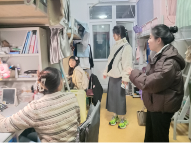 在走访查寝的过程中,学院领导老师亲切地问候返校学生,了解同学们假期在学习生活中的状况,实时地为同学们答疑解惑、解决困难,并且提出宝贵建议,提醒同学们要及时调整状态,劳逸结合关注自身身体健康与心理健康。叮嘱同学们要调整心态,规划好新学期的学习计划,以饱满的精神的风貌迎接新学期。走访中就学生的宿舍卫生、安全管理进行了重点排查,提醒学生注意交通安全、人身财产安全、校园消防安全,防范电信网络诈骗,注意寝室卫生,保持通风,养成良好作息习惯。