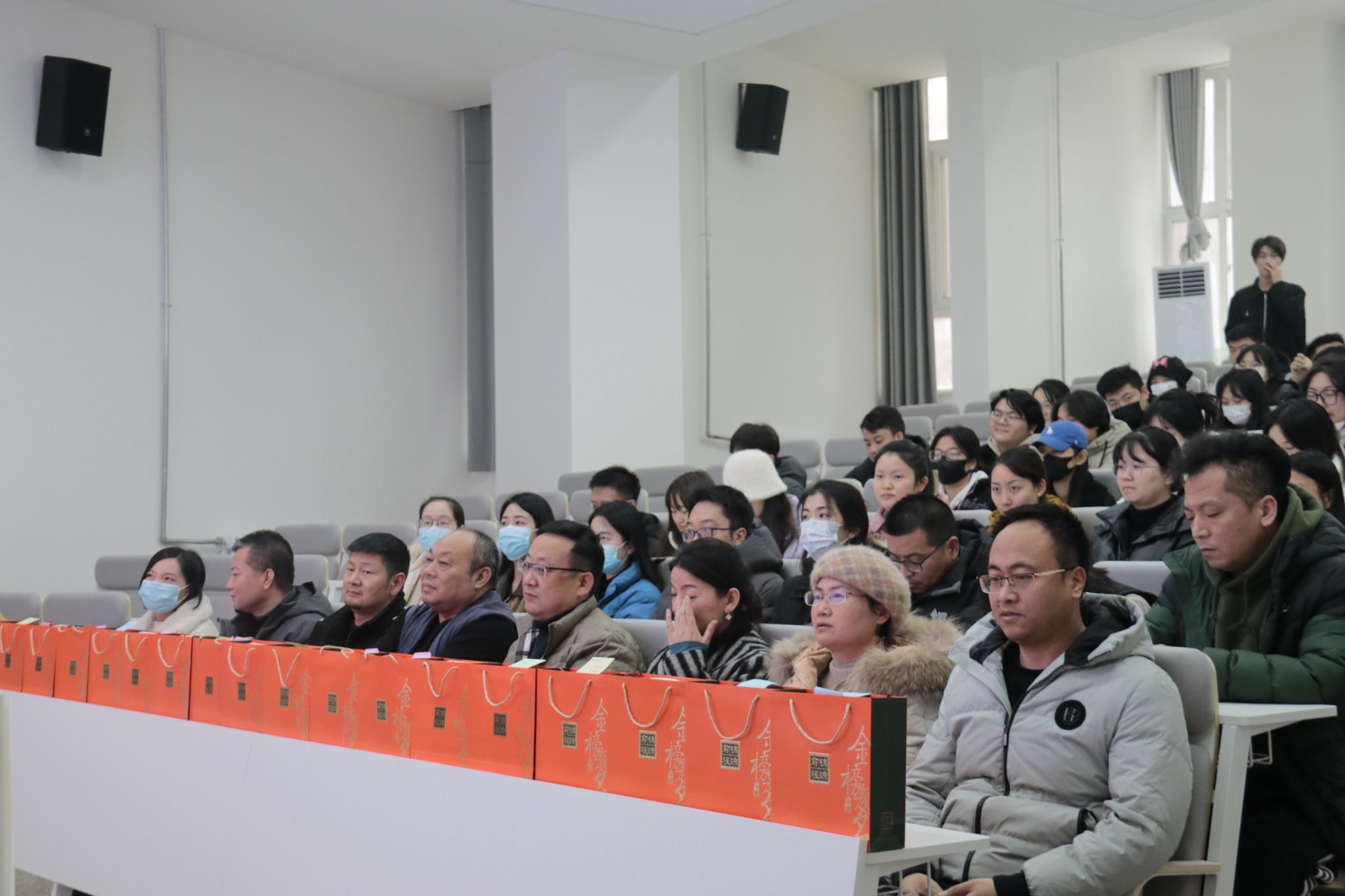 莅临本次送温暖现场的嘉宾有:艺术与设计学院院长董千,党委书记兼行政副院长徐中,环境设计系系主任吴迪,数字媒体艺术系主任张军,视觉传达设计系主任陈智明,数字媒体艺术系副主任刘腾蛟,环境设计教研室主任闫鹏飞、蔡莎莎,视觉传达系教研室主任邵攀科,以及全体学工人员。