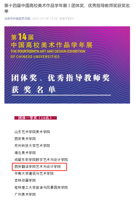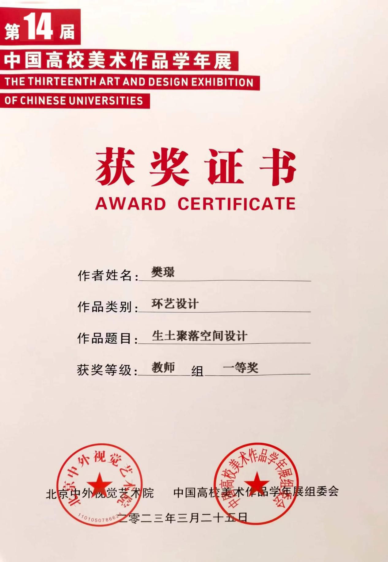 环境设计系积极引导师生参与学科竞赛,通过以赛促学,以赛促教提升学生的实践能力,在本次第十四届中国高校美术作品学年展喜获佳绩,其中荣获团体一等奖1项、优秀指导教师奖7项;师生参赛获奖共计16项(美术造型类获奖1项、美术设计类获奖15项),其中一等奖1项、二等奖7项、三等奖8项。