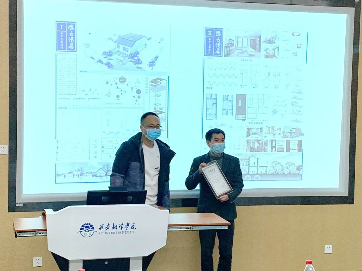 接着吴迪代表艺术与设计学院给西安市城市规划设计研究院授予《校园新星伯乐单位》证书,以表示感谢为我校的实践教学作出的帮助和努力。