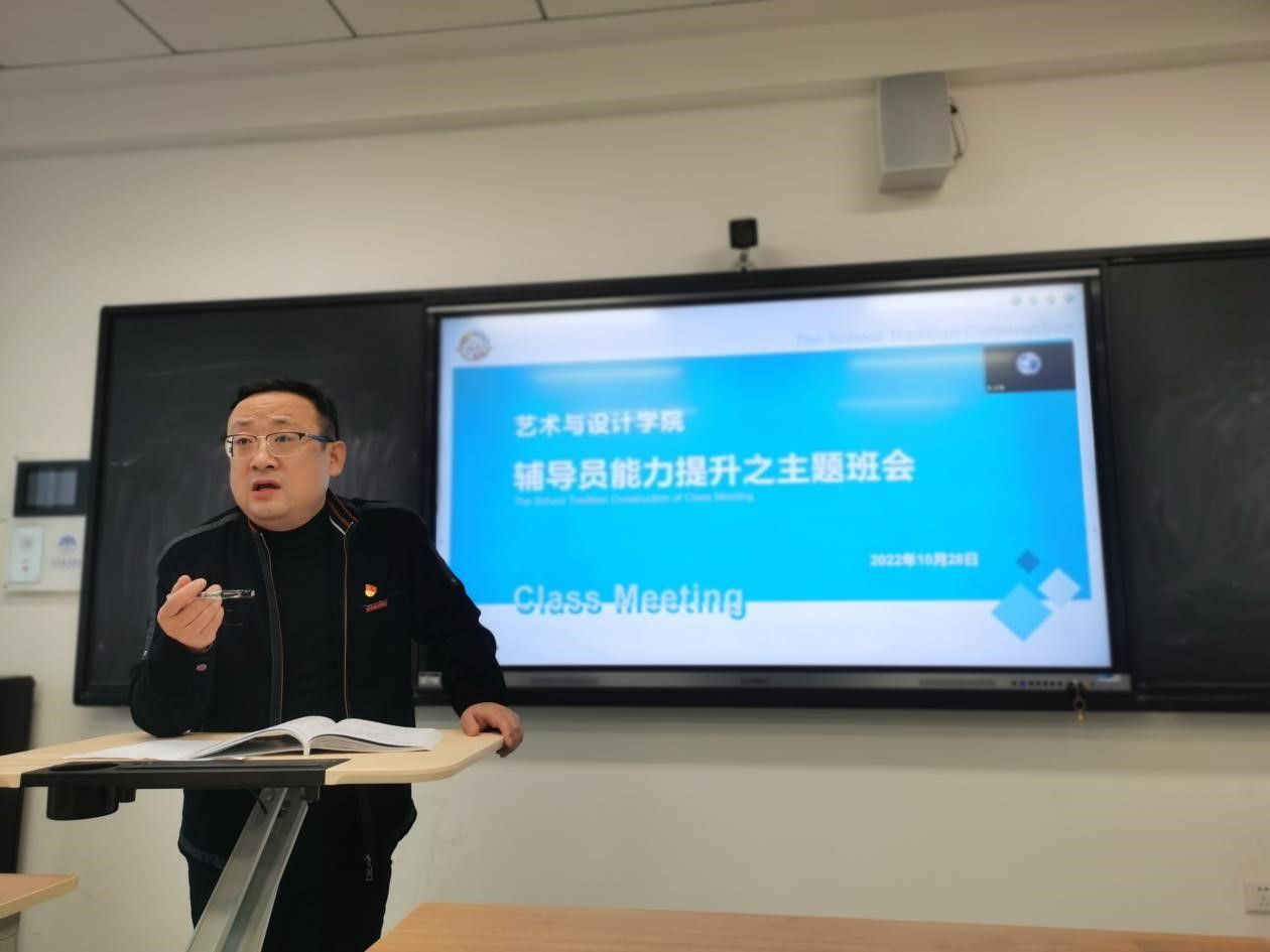 西安翻译学院艺术与设计学院2022—2023学年辅导员能力提升之主题班会初赛,于10月28日在10号教学楼举行。艺术与设计学院党委书记兼行政副院长徐中以及全体辅导员参加。比赛由艺术与设计学院综合办副主任王瑛主持。