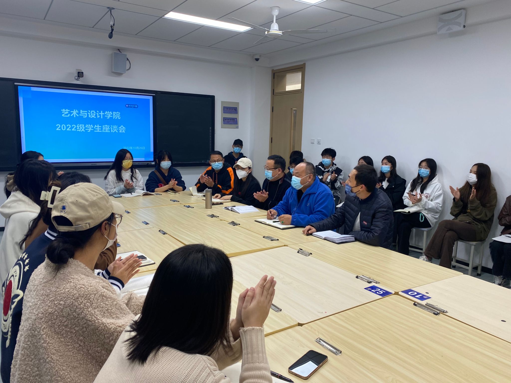 交流中,与会师生围绕课程学习、学风建设、学习成效、学习成果等问题进行了热烈讨论、坦诚交流,并提出了很好的建议,一是希望再多增加专业相关实践课程以提高实操能力;二是希望能够提供更多设计参观、讲座等优质资源学习交流机会;三是建议组织更多的专业竞赛等专业相关活动等。