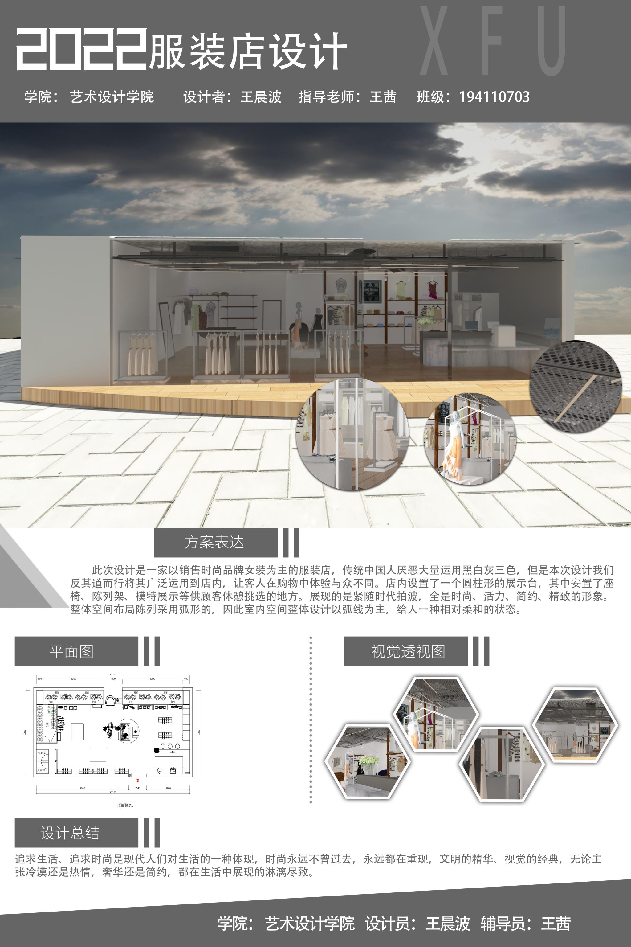 2022年全国行业职业技能竞赛——第二届全国工业设计职业技能大赛陕西省选拔赛室内装饰设计师(室内陈设与空间设计)赛项近日公布了省赛预赛结果,我院环境设计系王茜老师指导下,王晨波同学以作品《清雅服装店设计》成功突破重围进入省级决赛。