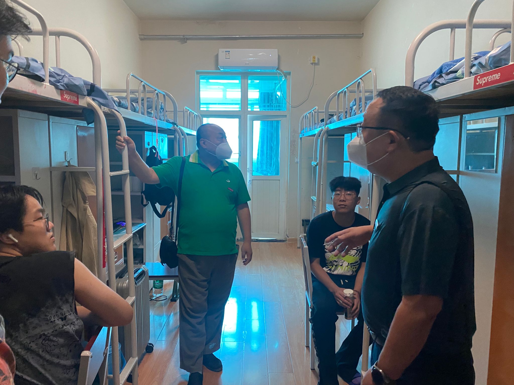 本次迎新工作中,艺术与设计学院院长董千教授,党委书记兼行政副院长徐中书记在各部负责人陪同下走访新生公寓查看宿舍情况,亲切慰问2022级新生,并到新生报到现场视察迎新工作,详细了解新生入学报道情况,向辛勤工作在迎新第一线的老师和学生志愿者表示了亲切慰问,对迎新工作的开展表示了肯定,并勉励大家继续高质量、高效率、圆满地完成新生迎新报到工作。