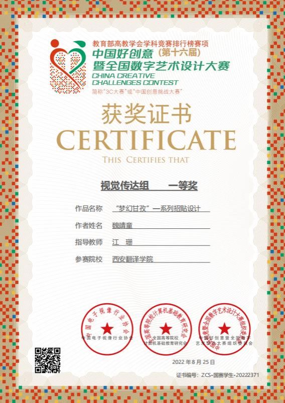 据悉,由中国电子视像行业协会、中国好创意暨全国数字艺术设计大赛组织委员会主办。是入选中国高等教育学会发布的《全国普通高校学科竞赛排行榜》赛项。起始于2007年,到目前为止,已经连续举办17届。是我国第一个以数字艺术为核心、在艺术设计、数字媒体、数字技术等专业领域里的综合性赛事。也是规模大、参赛院校多、影响广泛的权威赛事。