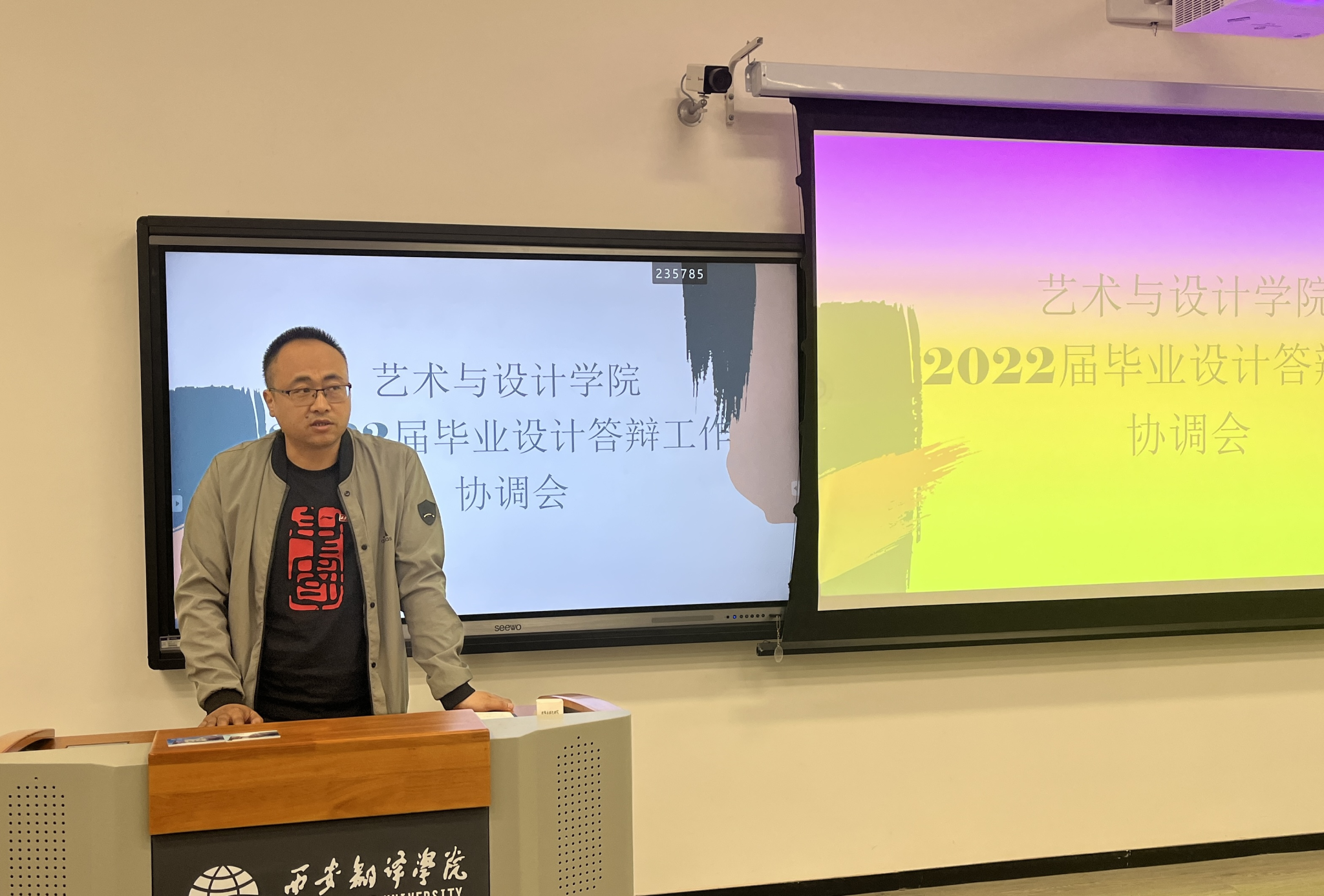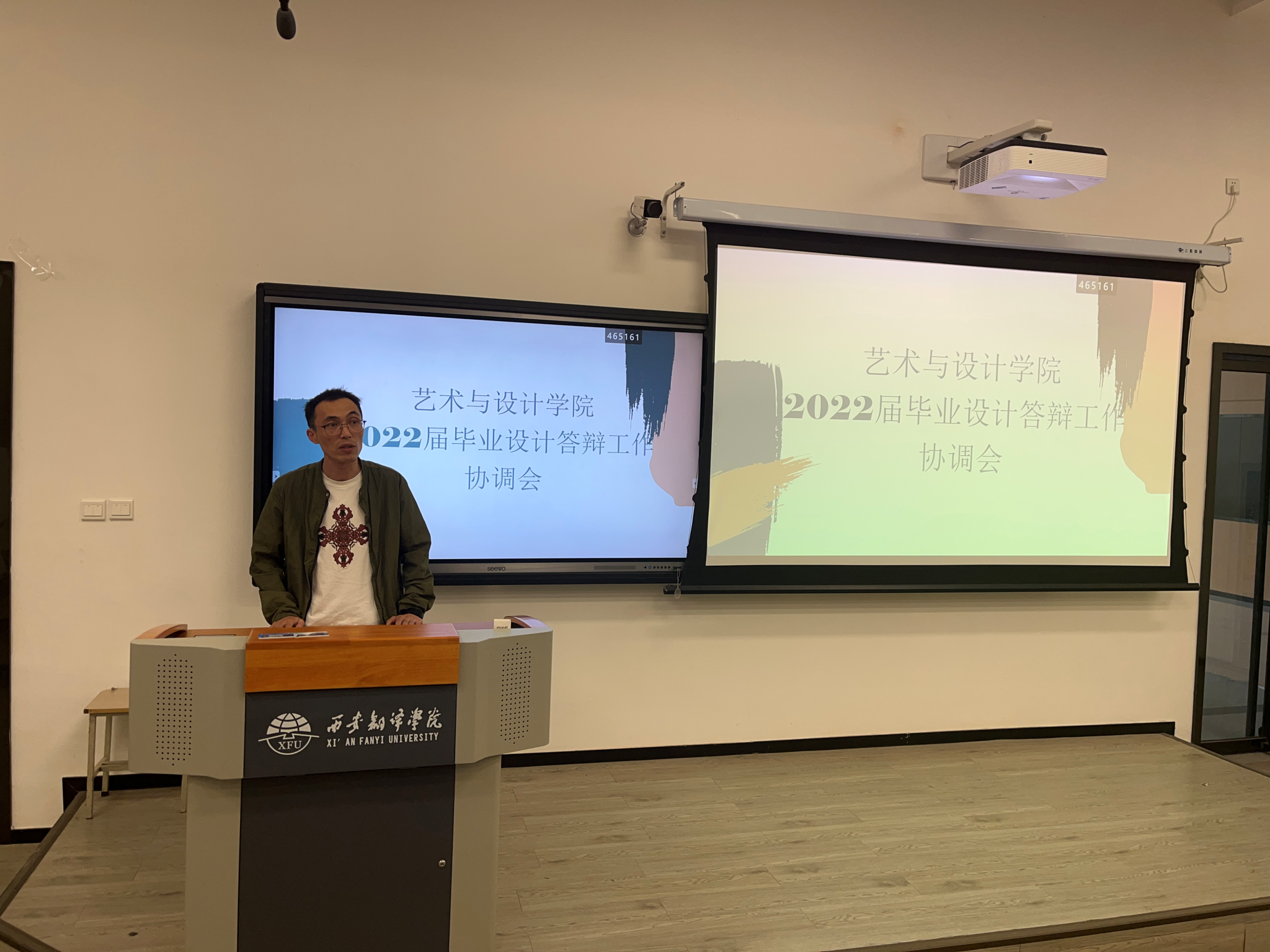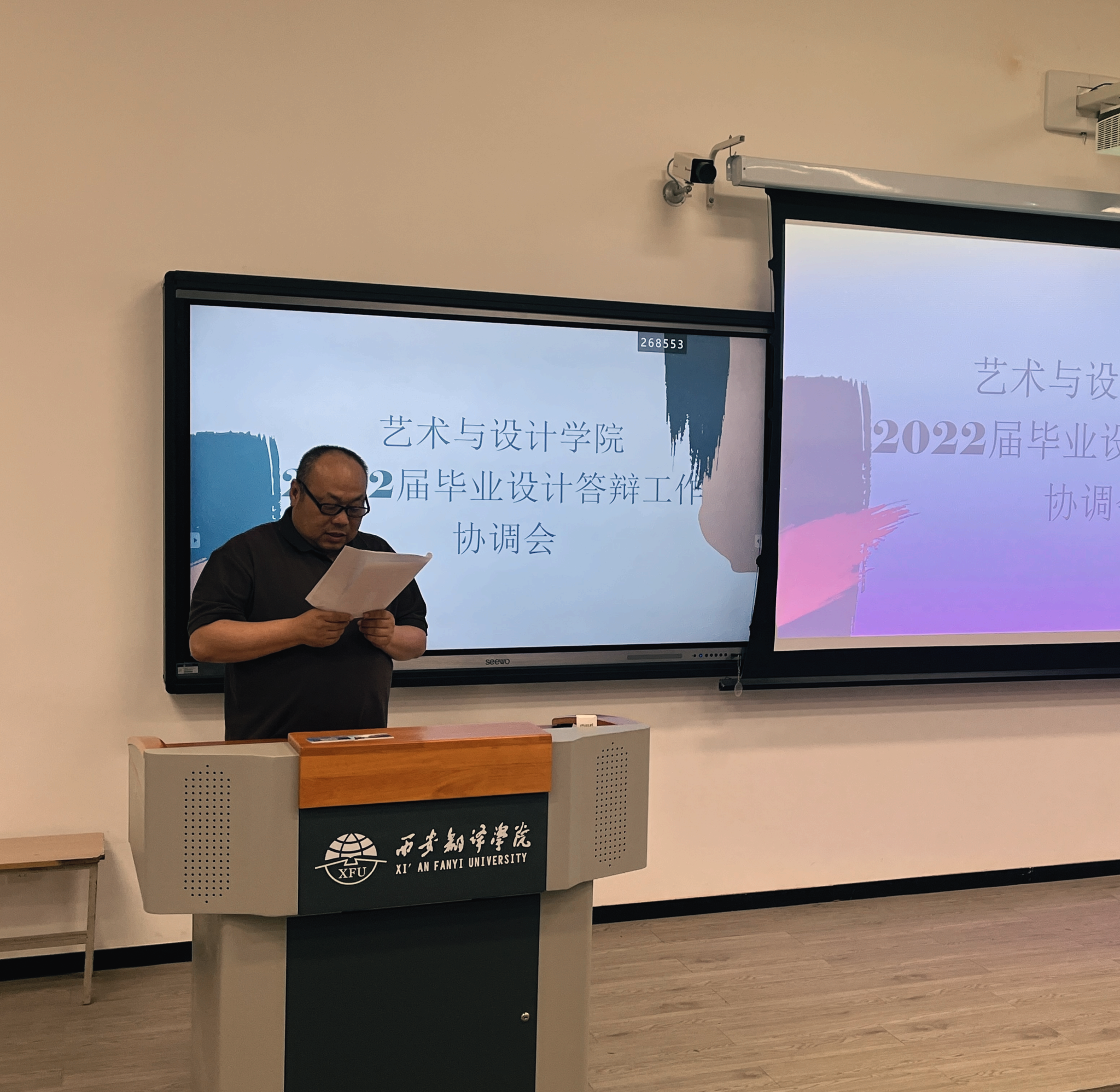 为推进毕业生答辩工作顺利进行,保证毕业设计答辩的质量,高效完成毕业设计答辩的各项工作,5月18日,艺术与设计学院在10T12教室召开2022届毕业生毕业设计答辩工作协调会。出席本次协调会的领导有艺术与设计学院院长董千,副院长马平、教学负责人吴迪、综合办主任李宁、综合办陈静,以及毕业设计指导教师、评阅教师,答辩组教师、答辩秘书和毕业班辅导员,本次会议由李宁主持。