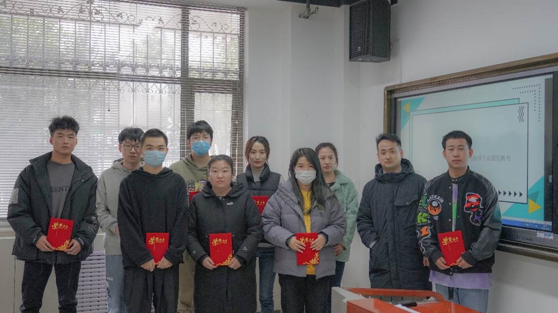 艺术学院视觉传达设计系教师李宝楠老师为上一届译创工作室成员颁发荣誉证书。