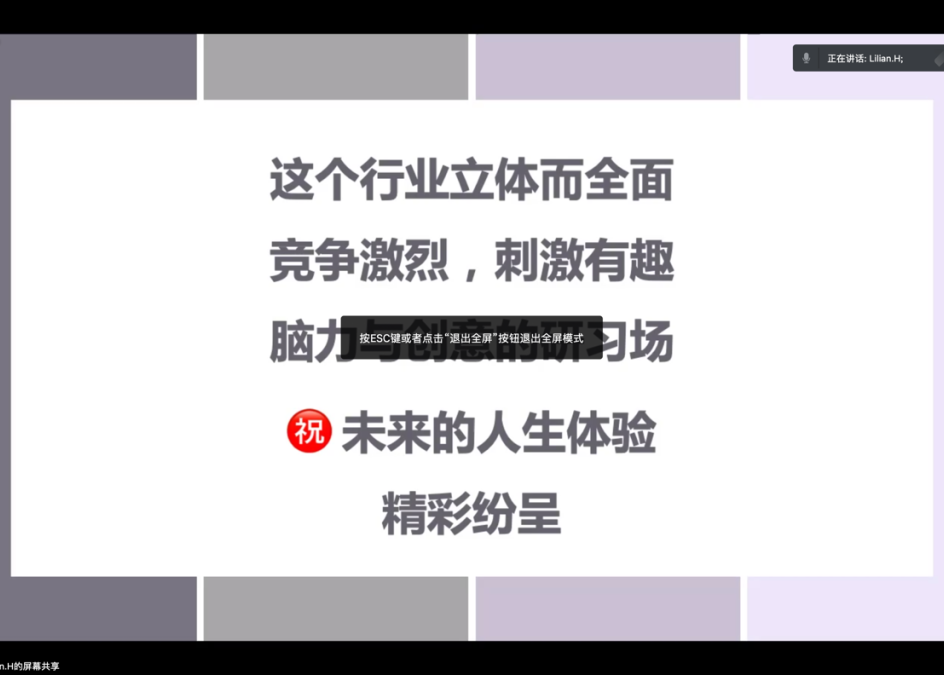 此次讲座由陈秋妤老师主持,该系所有教师和视觉传达设计专业大三、大四的学生参加了此次讲座。何女士作为,自由创作人,设计师,独立策展人,跨界作家;在2019年出版散文集《似懂非懂》;也是嘉骥营销、马上假日、星耀马术、+MA品创品牌创始人;多种类产业整合资深人士,老牌营销策划人,陕西地产分会创办人之一跨界文化艺术推动人;多年来专项致力于美丽乡村建设范畴内的产业发展事业,拥有近十五年的商业资源配置及设计运营实操经验。