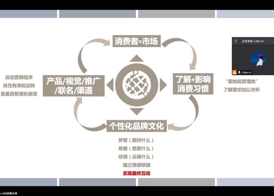 在我们今后的设计中希望大家能从本次的讲座中获得一些新的设计思路,在做设计的时候不单单只从设计的表象去做设计,而是从多方位的角度作为设计的背景及切入点,只有在对品牌有认知,对市场需求及消费者行为心理有了解的情况下,我们做出的设计才不仅仅是抓人眼球的设计,而是抓住人心的好设计。