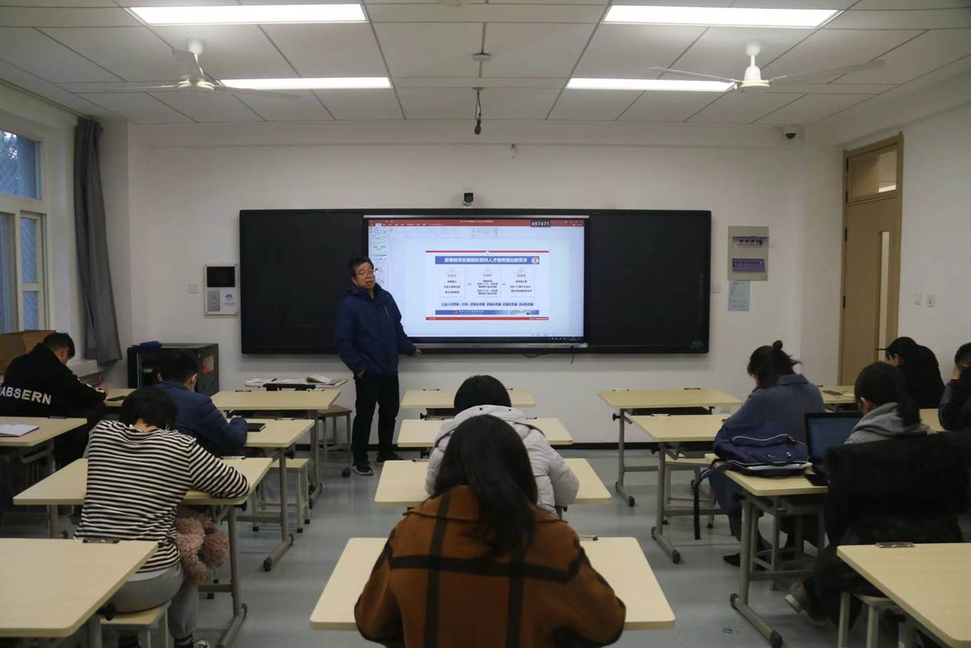首先,董小健对于期中教学检查进行了详细报告。他从领导小组、时间安排、检查工作等方面进行了具体讲述。董小健特别提到,期中教学检查是教学活动的常规检查工作,老师们应当始终树立立德树人的精神,重视线上线下相结合的教学模式;将教学科研融入到专业课内容之中,提升教学质量;时刻关注国家政策的推广,课程的改革要有超前的意识等。