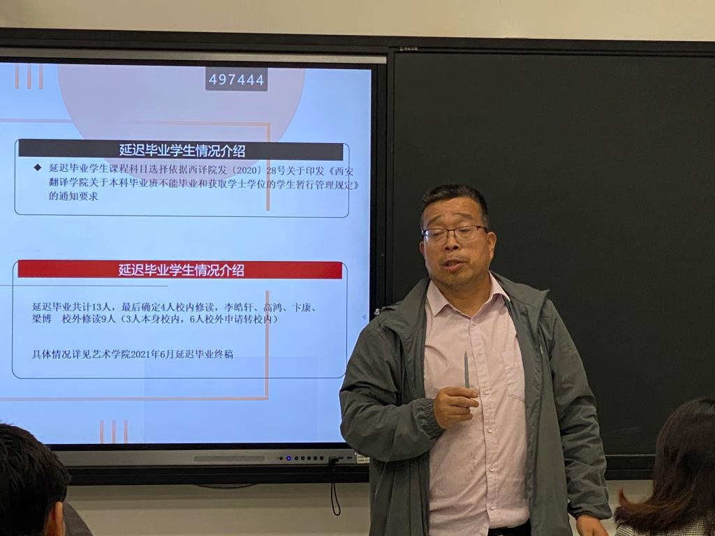 董小健老师首先介绍了延迟毕业学生的情况,对延迟毕业学生涉及的课程以及相关的作业要求进行了阐述,另外,进行了学业指导计划安排,从时间节点以及注意事项都为同学们做了讲解,希望同学们能够积极与指导教师沟通交流,按照要求完成相关学习任务。