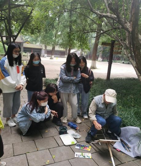 在写生期间,同学们在老师的带领下,在基地周边写生,考察学习陕南居民特点,体验了当地居民日出而做,日落而息的乡村生活。其余时间我们来到了历史悠久的武侯祠博物馆、武侯墓博物馆进行参观,考察学习三国文化相关内容,它们是中国历史上的政治家、军事家,三国蜀汉丞相诸葛亮的长眠之地。墓区环水抱古木参天,四季如春风景宜人。武侯墓诚如导游所言,温暖、宁静、安详,正如武侯本人的气质一般智慧不失肃穆,先生之风,山高水长。在这一片祥和之地,同学们也纷纷拿出了画笔,用绘画抒发着自己对武侯墓的所言所感!