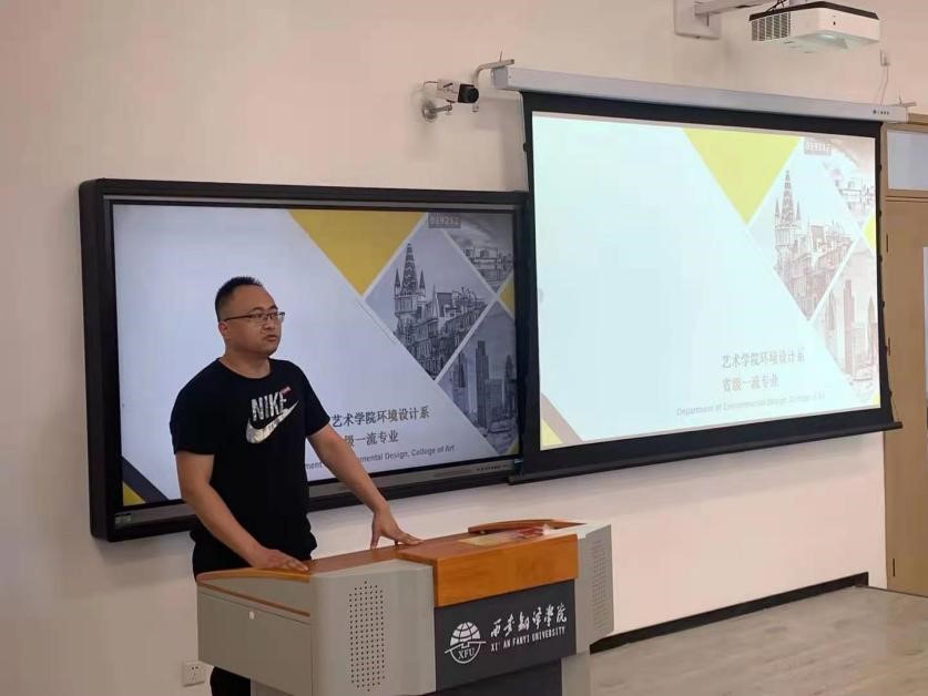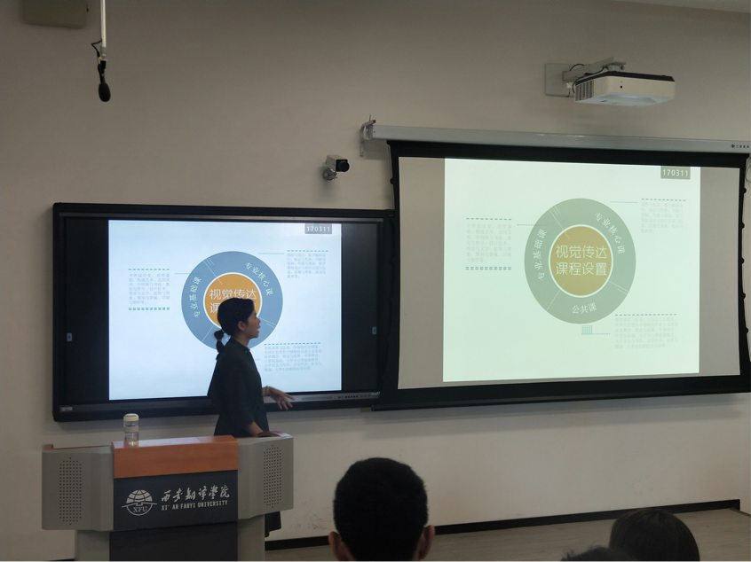艺术学院环境设计专业由吴迪、贾荣和崔宇老师分别进行讲解、数字媒体艺术专业由赵伸老师进行讲解、产品设计专业由刘腾蛟老师进行讲解、视觉传达设计专业由文珠蓉老师和周卉老师进行讲解。