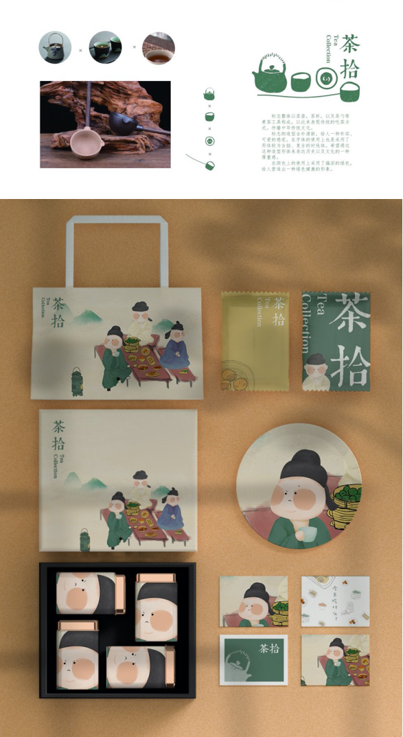 一等奖获奖作品:“茶拾”品牌形象设计,作者:程金金,指导教师:文珠蓉
