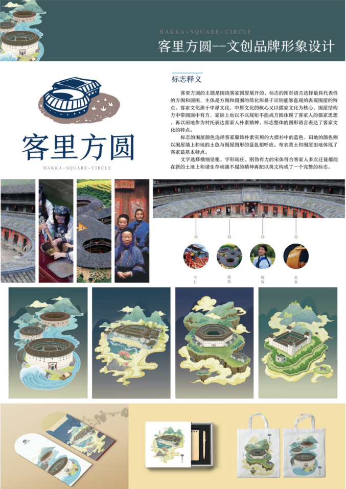 一等奖获奖作品:“客里方圆“文创品牌形象设计,作者:李威,指导教师:刘玉娟