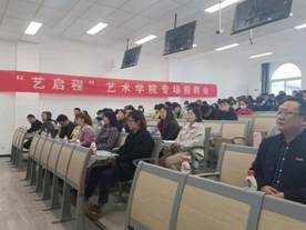 为更好地服务社会,提高学生的就业机会。3月18日,艺术学院于10T42教室召开了新学年设计类专业专场招聘会——“艺启程”艺术学院专场招聘会。参加本次招聘会的领导有:艺术学院行政副院长徐中、就业中心主任赵东良、综合办副主任管蕊。