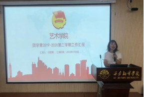 艺术学院团总支书记任校莉老师对本学期我院的团总支工作从“线上线下共推进、思想政治建设、取得成绩、未来工作计划”四个方面进行了汇报。