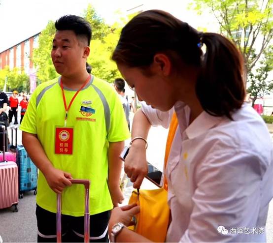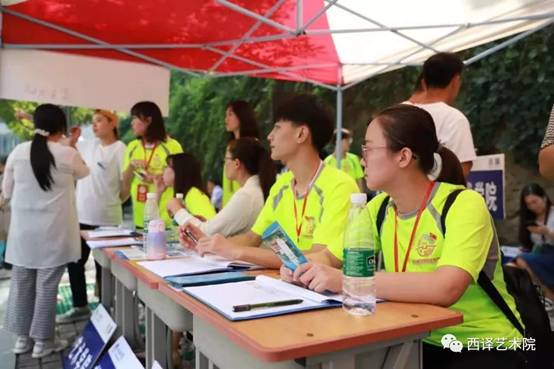 大家以优质的服务去迎接新生,耐心地与家长沟通,为家长及时安排座位休息,引导着学弟学妹们穿梭于交款缴费、报名登记、领取饭卡、行李及军训服等各项事宜之间。