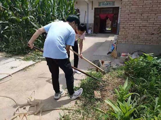 我们去给他送去了米还有油,然后询问了老人家的身体状况。我们看到老人家的院子里面有很多的杂草,我们就自发地拿起老人院子里面的除草工具,帮着老人除掉院子里面多余的杂草。