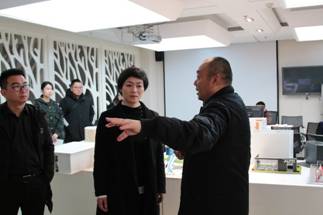 最后,董院长携嘉宾来到译创设计工作中心,介绍工作室业务,讲解学生课程。