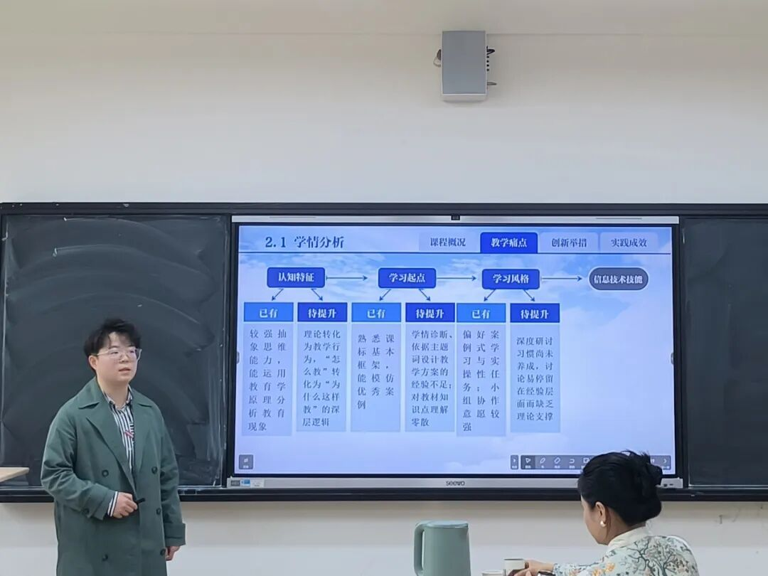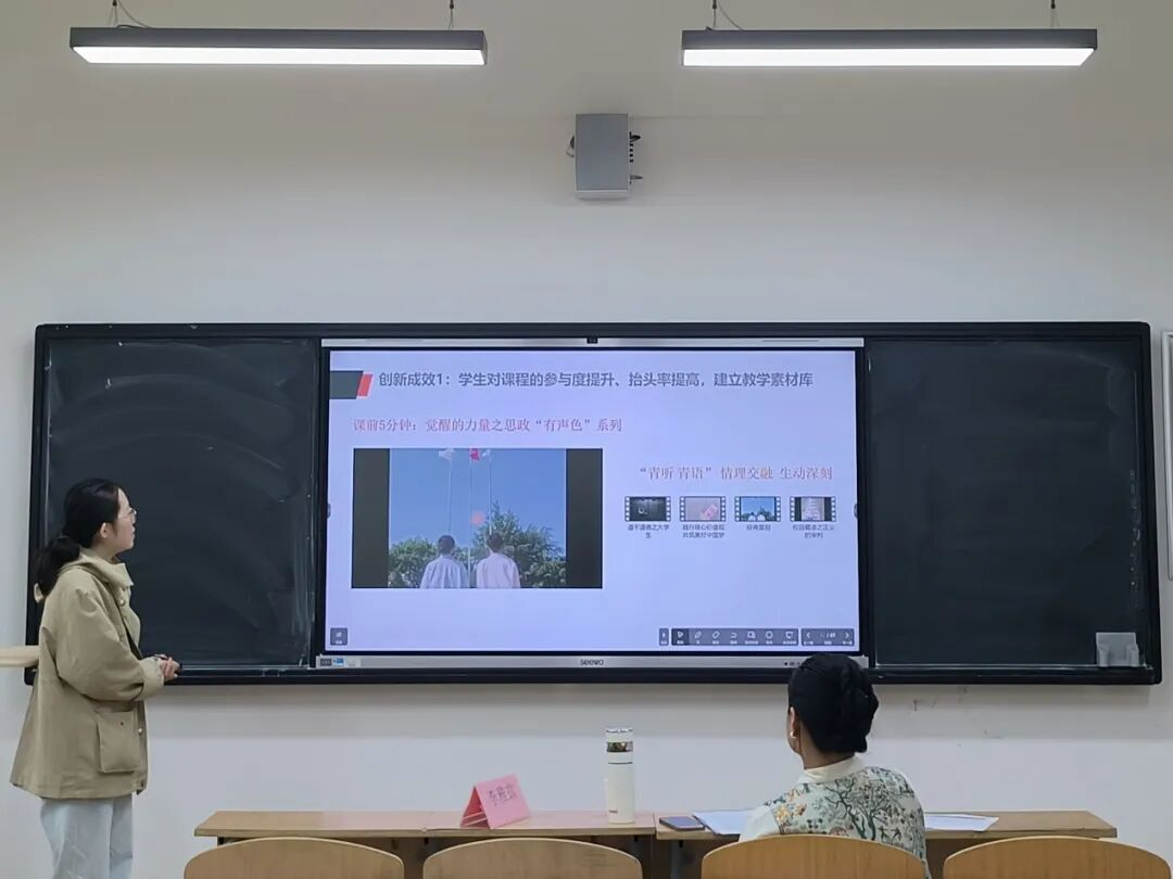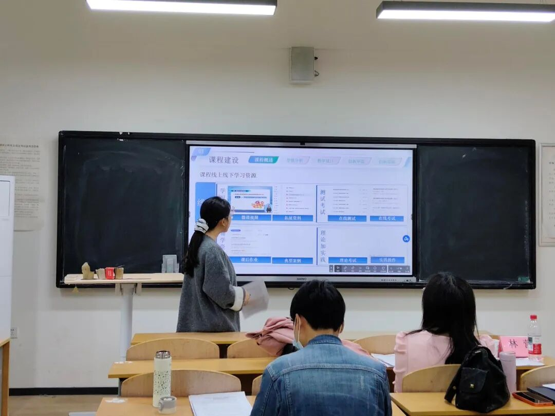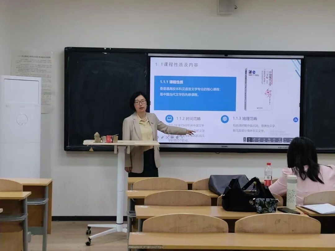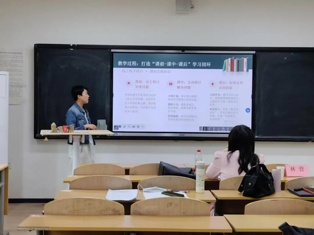 在8320教室,参赛教师依次登台,围绕中国现代文学史、中国教育史与中国小学教育史、文创设计、视觉传达设计等课程进行完整汇报展示,深入剖析学情痛点,分享模块化教学、问题链驱动、情境化教学、AI赋能、双螺旋教学等创新做法,充分展现了扎实的教学功底与积极的备赛状态。