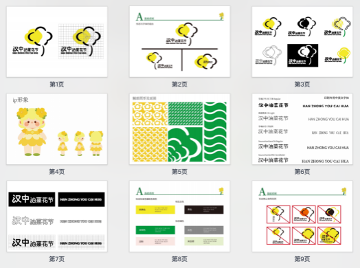 在地域文化项目方面,教师引导学生围绕“安康博物馆”“紫阳富硒茶”“汉中油菜花海节”等选题开展设计实践,深入挖掘地域文化资源,探索传统文化的当代表达路径。其中,吕文霞同学的“汉中油菜花海节”项目以地域自然景观与农耕文化为切入点,提炼视觉符号并构建品牌形象及IP设计,增强了设计的文化识别性与传播价值。