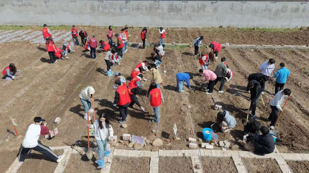 进入田间后,同学们迅速分组投入劳作,在泥土间挥洒汗水,用双手耕耘希望。大家弯腰捡拾、搬运田间石块,为后续耕种清理出平整的土地,以协作清除劳作障碍;手持农具深耕翻土,打碎土块、疏松土壤,让土地恢复生机,亲身感受农耕的质朴与厚重;在老师指导下拉线定界、起垄开沟,为播种做好准备,在细致操作中体会农耕的严谨与规律。劳作过程中,同学们褪去青涩,俯身泥土间相互帮助、彼此鼓励,在搬石、翻土的汗水里真切体会 “一分耕耘,一分收获” 的道理,深刻理解了劳动的艰辛与价值。这些成果证明:劳动教育正在成为连接知识、专业与社会的纽带。它让知识走出象牙塔,让青春扎根大地,让每一个年轻的生命在触摸泥土的过程中,找到与世界对话的方式。