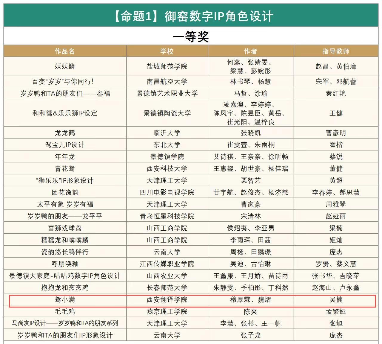 中国好创意暨全国数字艺术设计大赛是中国第一个以数字艺术、数字设计、数字创意、数字媒体以及数字技术创新领域各专业综合类规模大、跨学科、多专业、参与院校多、影响广泛的权威赛事。今年御窑专项赛的加入,更为这个舞台注入了景德镇和陶瓷的文化特色。大赛主题为“岁岁鸭和TA的朋友们”,以御窑博物馆的新晋网红“明成化素三彩鸭形香薰”为代表,下设御窑数字IP角色设计、岁岁鸭IP衍生产品开发设计、“岁岁鸭和TA的朋友们”数字动画短片设计、旅游区数字交互设计等七个命题。