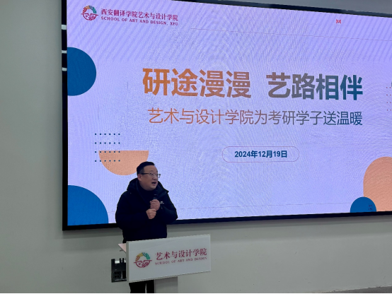 12月19日,在这个充满希望与梦想的季节里,艺术与设计学院领导老师和考研学子们齐聚一堂,为这些即将踏上考研征途的学子们举办这场温馨又鼓舞的仪式。考研之路,是自我挑战的征程,是逐梦未来的攀登。每一位考研学子都在这条道路上付出了辛勤的汗水与努力,他们即将带着我们的祝福与期待,奔赴考场,为自己的理想拼搏。