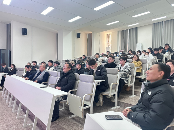 接下来,董千院长发表讲话,向所有正在备战研究生考试的同学表达了最诚挚的问候和祝福。同时表示同学们不是一个人在战斗,老师永远是你们坚实的后盾,学院为了帮助大家更好地应对考试,特此赠予各位同学冬日暖阳考研礼包,为大家加油鼓劲、提供支持和关爱,以及每份暖阳考研礼包里都有老师们亲手写下的祝福语便签,所有老师衷心的希望大家取得好成绩,我们一“研”为定!