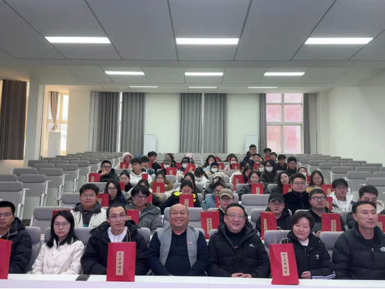 最后,由各位领导老师们共同为考研同学发放礼品,并合影留念。