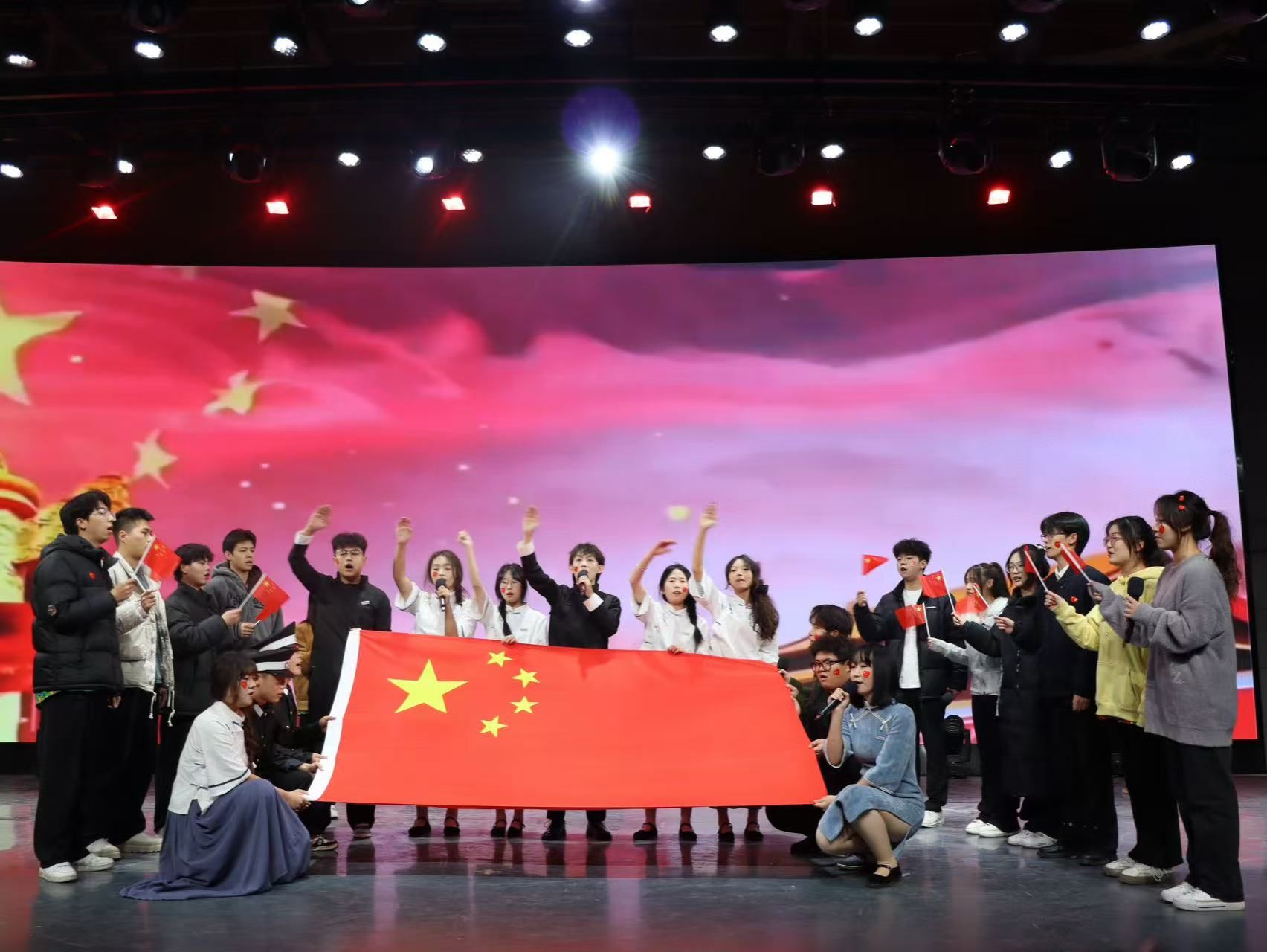 此次活动在东区演播大厅隆重举行,宛如一场璀璨夺目的艺术盛会,汇聚了众多力量,激发了青年学子的激情,为校园文化生活增添了一道亮丽的风景线。晚会节目内容丰富、形式多样,包括歌曲、舞蹈、朗诵、器乐演奏等,共同绘制出一幅精彩纷呈、绚丽多彩的青春画卷。