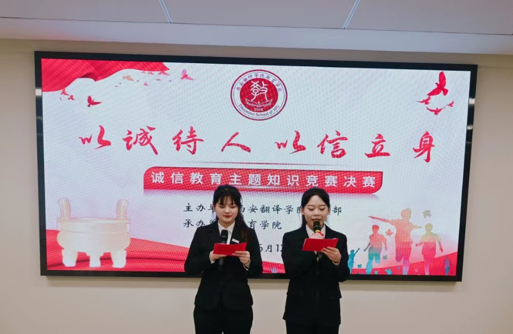 6月12日,由西安翻译学院学生工作部(处)主办、教育学院承办的“以诚待人,以信立身”诚信教育主题知识竞赛在八号楼二楼学术报告厅开展。出席本次比赛的评委老师:国际商学院团总支书记闫斌,体育学院团总支书记牛帅,国际商学院辅导员刘玲,教育学院辅导员张美娜、侯莹、朱子琦。