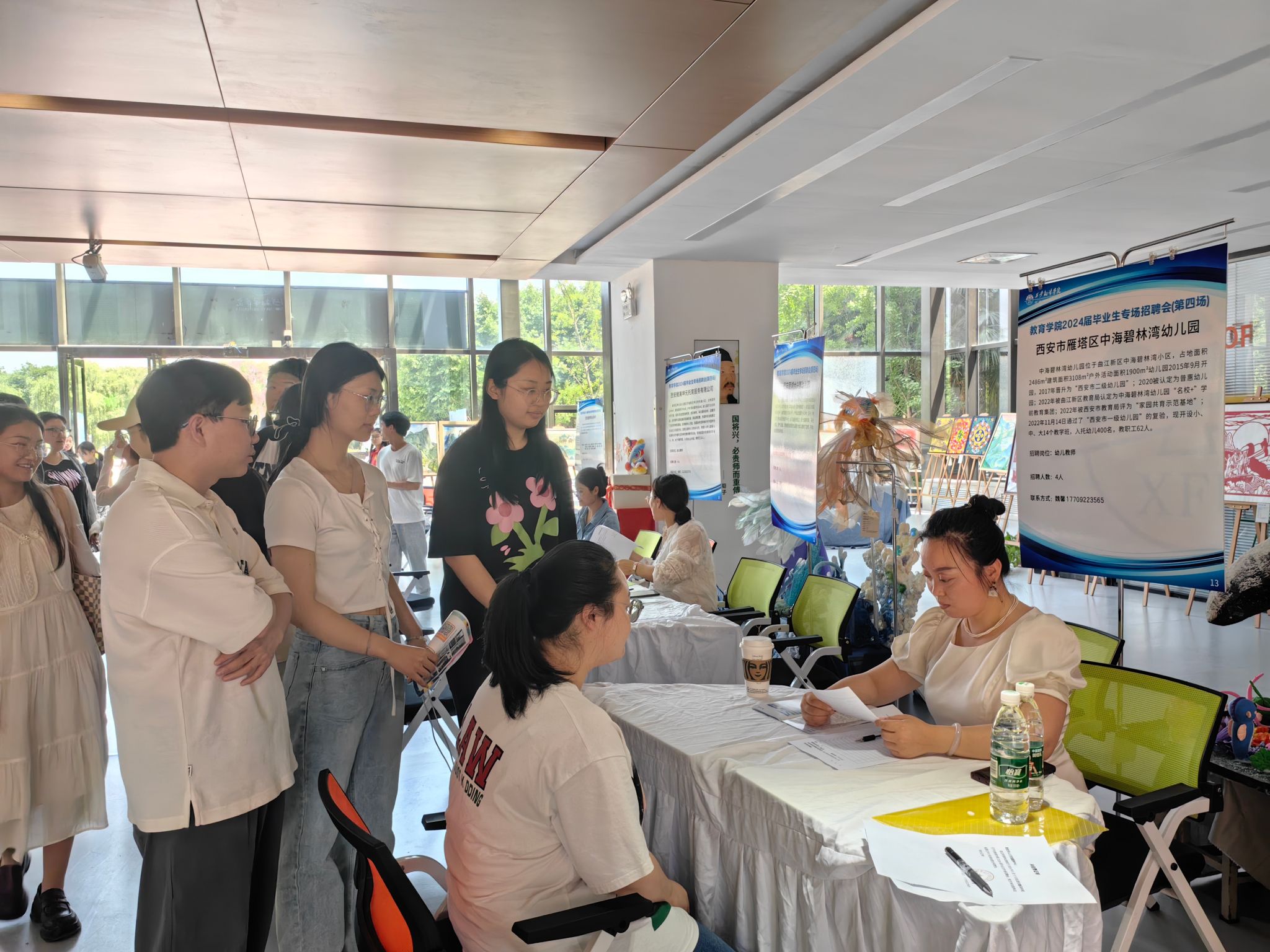 本次招聘会,教育学院高度重视、周密安排、精心筹备,紧扣教育学院毕业生的专业特点,做好用人单位的邀请。最终有中育品格教育集团、小云朵艺术培训学校、雁塔大地幼儿园、西安稚美坤元托育服务有限公司、西安莲湖区中海碧林湾幼儿园等十几家用人单位应邀参加。