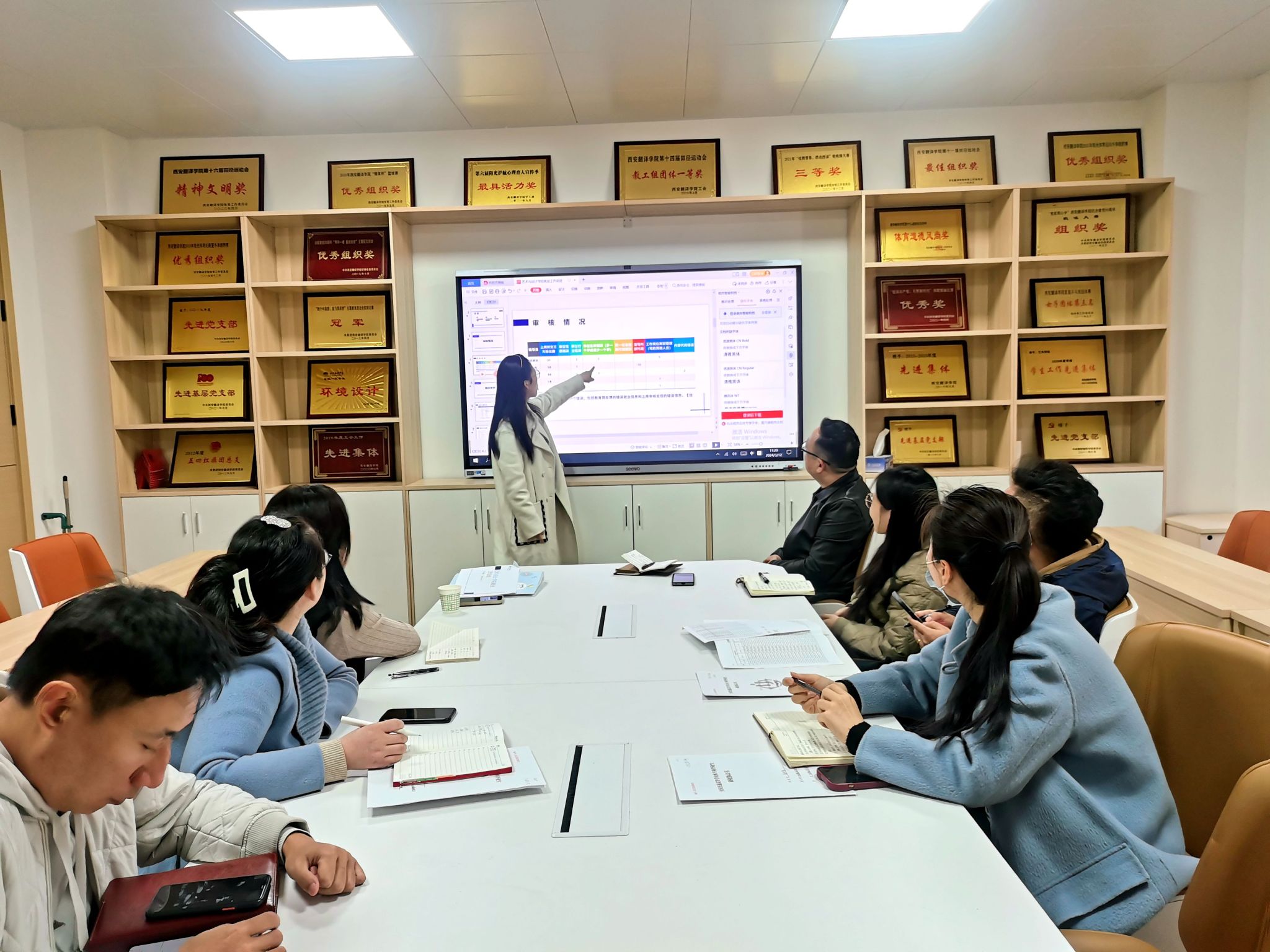 然后,就业负责人及毕业班辅导员分别汇报了我院2024届毕业生就业数据,各班级就业、考研初试和考公情况。分析了2024届毕业生就业工作的当前形势,对所带班级的工作经验和方法举措,进行了现场分享交流,同时对就业工作中存在问题和困难进行了探讨沟通。