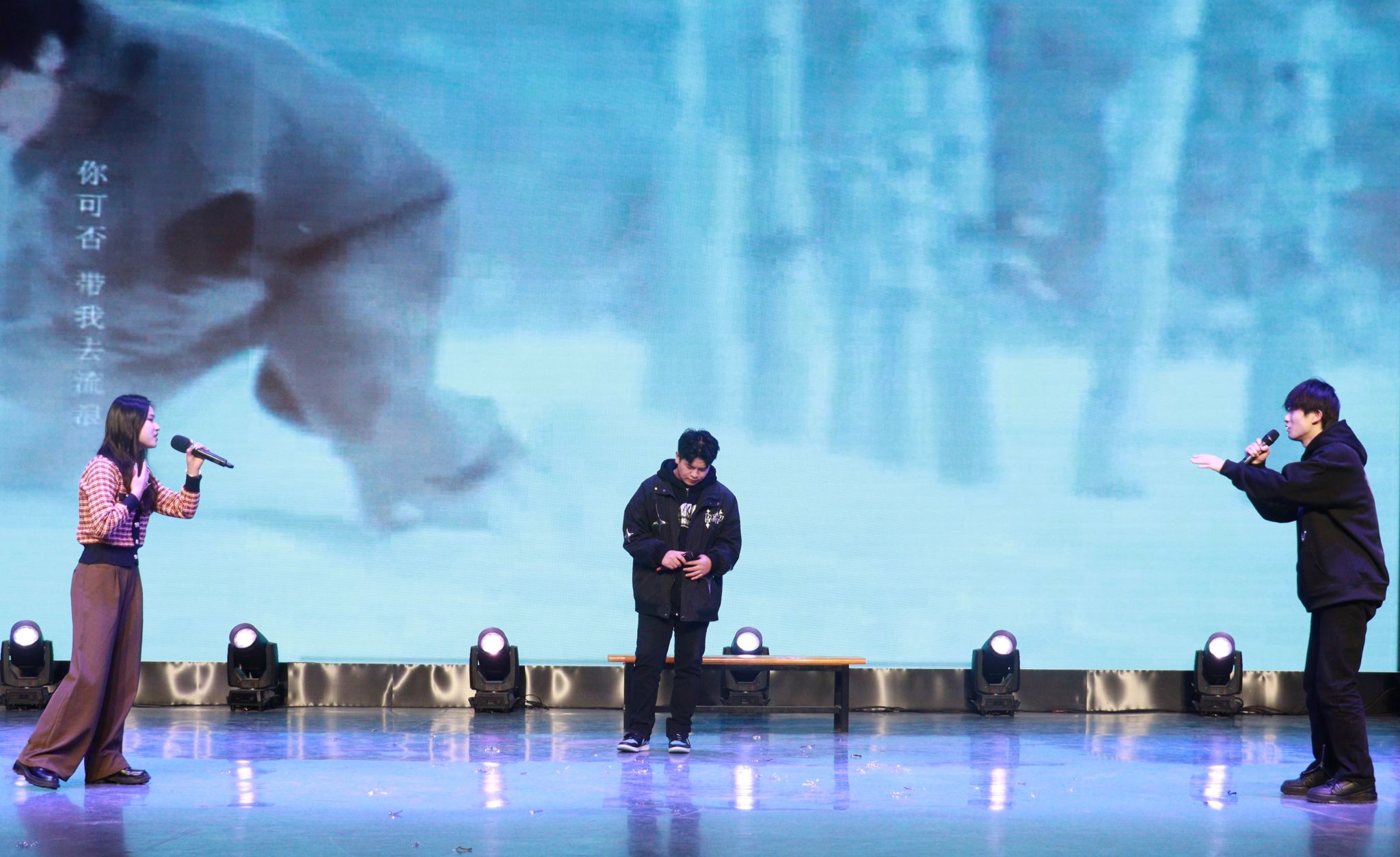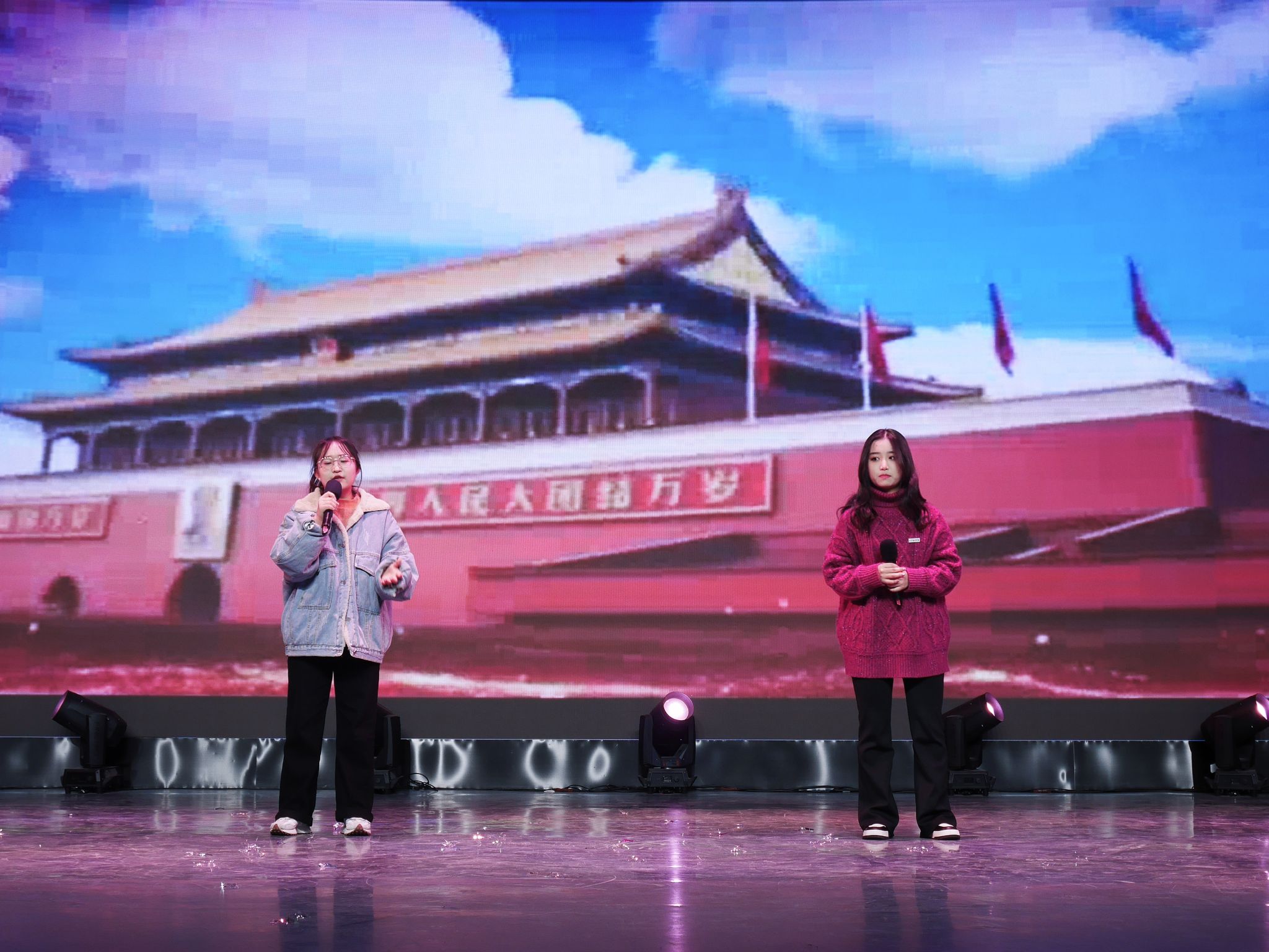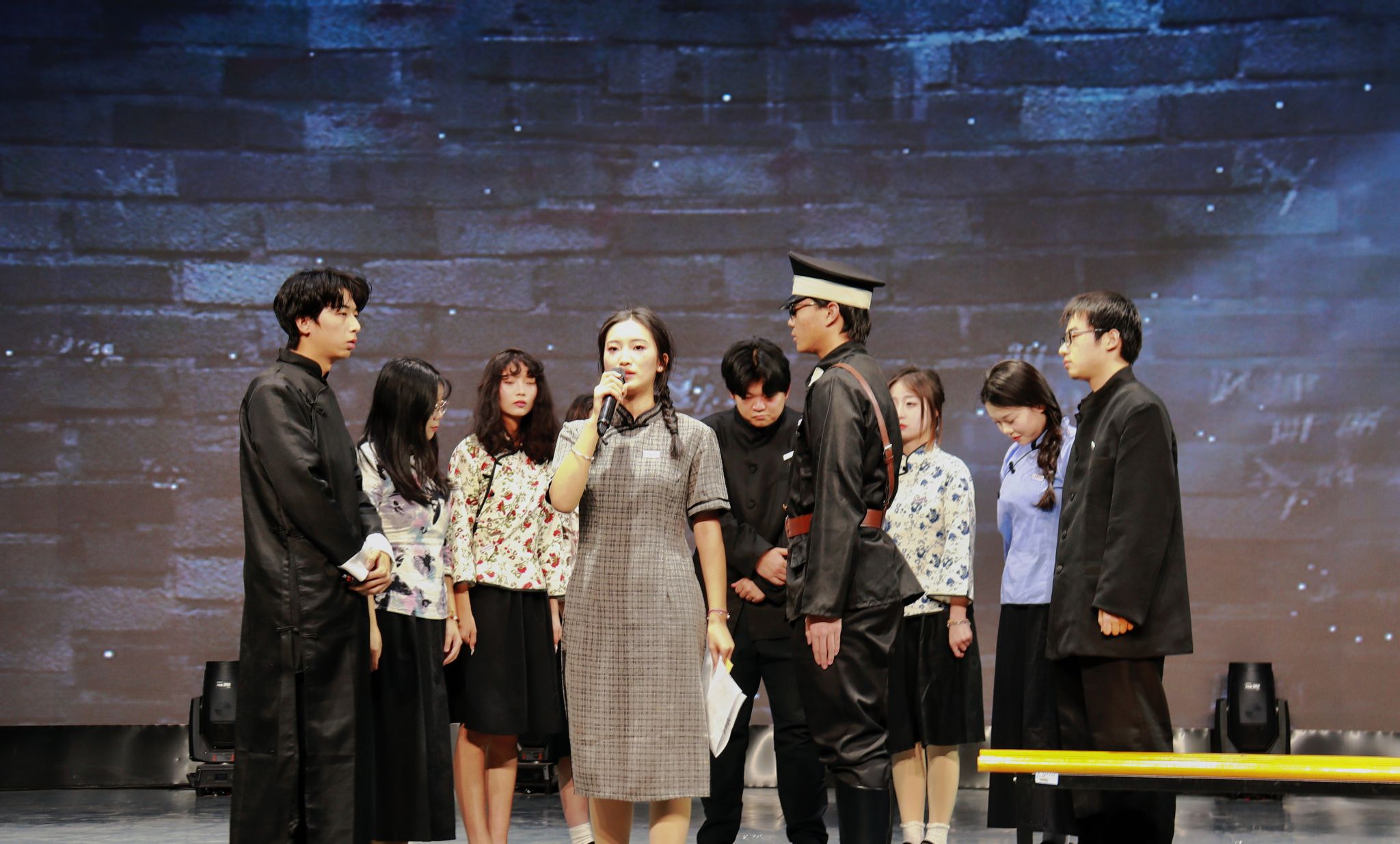 晚会在动感十足、热情洋溢的开场舞中拉开帷幕,充满节奏感的舞蹈,俏皮甜美的笑容和酷飒有力的动作,伴随着热情似火的音乐,现场气氛逐渐升温。梅山七圣乐队带来了摇滚歌曲《再见杰克》,在全场高燃的氛围中让大家感受到要以积极向上的态度去乐观地生活,去勇敢地追求自己的幸福和梦想。情景剧《红色信使》通过演绎一段动人的故事,将全场观众带回了那个令人铭记的岁月,展现了中国共产党艰苦奋斗的革命精神,激励大家要像共产党前辈们一样,为社会进步贡献出属于自己的一份力量。《红色朗诵》以朗诵的方式传承爱国精神,字里行间流露出对中国共产党的无限热爱,极富感染力的舞台表现传递出西译学子对党的美好祝愿。