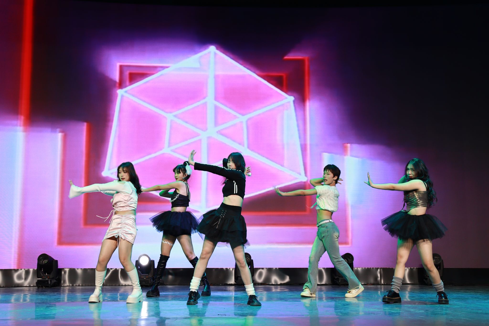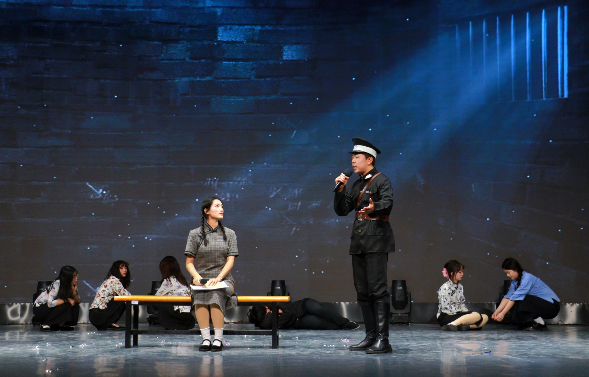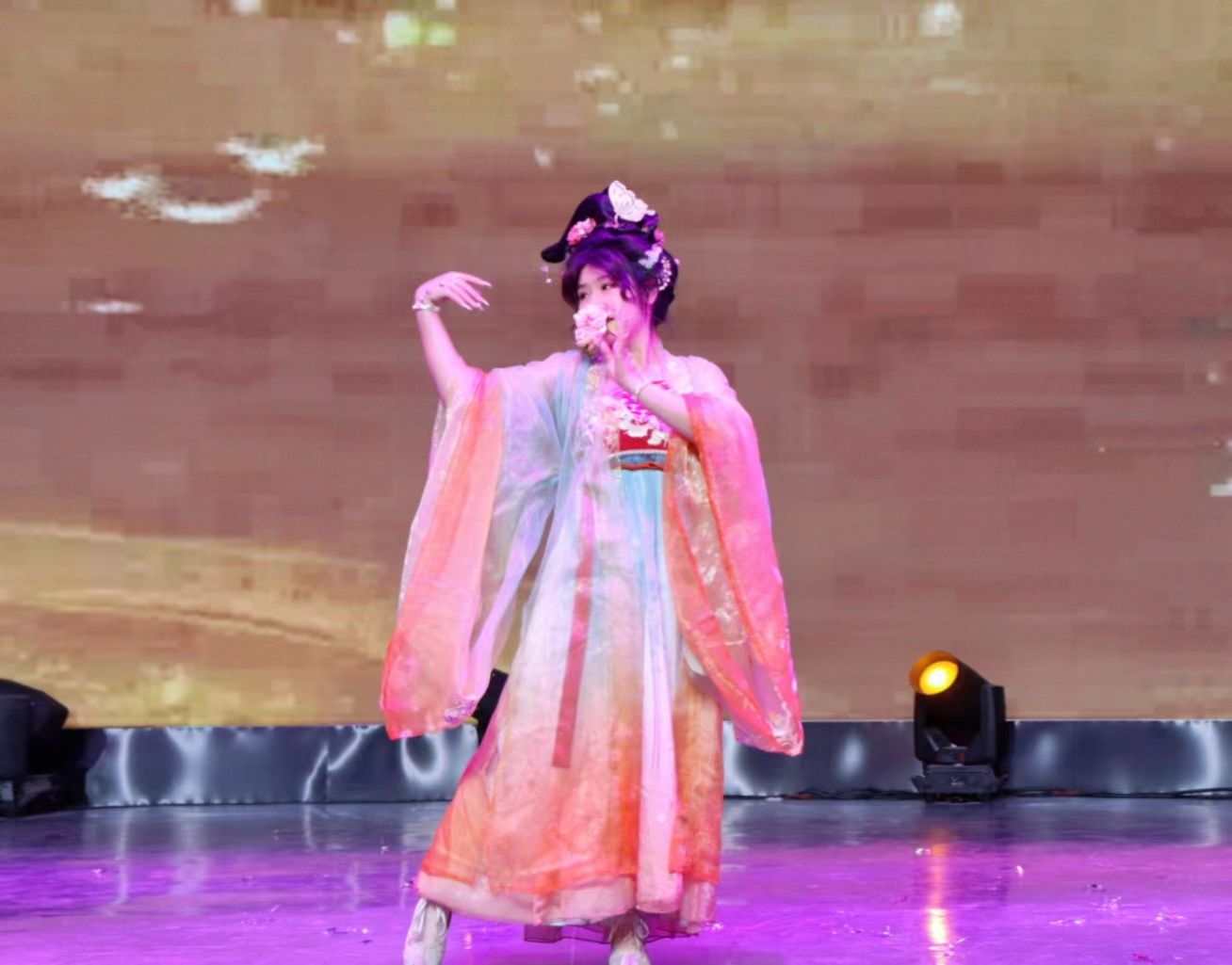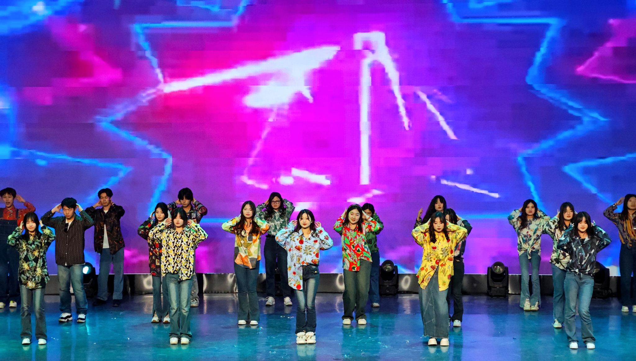 晚会在动感十足、热情洋溢的开场舞中拉开帷幕,充满节奏感的舞蹈,俏皮甜美的笑容和酷飒有力的动作,伴随着热情似火的音乐,现场气氛逐渐升温。梅山七圣乐队带来了摇滚歌曲《再见杰克》,在全场高燃的氛围中让大家感受到要以积极向上的态度去乐观地生活,去勇敢地追求自己的幸福和梦想。情景剧《红色信使》通过演绎一段动人的故事,将全场观众带回了那个令人铭记的岁月,展现了中国共产党艰苦奋斗的革命精神,激励大家要像共产党前辈们一样,为社会进步贡献出属于自己的一份力量。《红色朗诵》以朗诵的方式传承爱国精神,字里行间流露出对中国共产党的无限热爱,极富感染力的舞台表现传递出西译学子对党的美好祝愿。