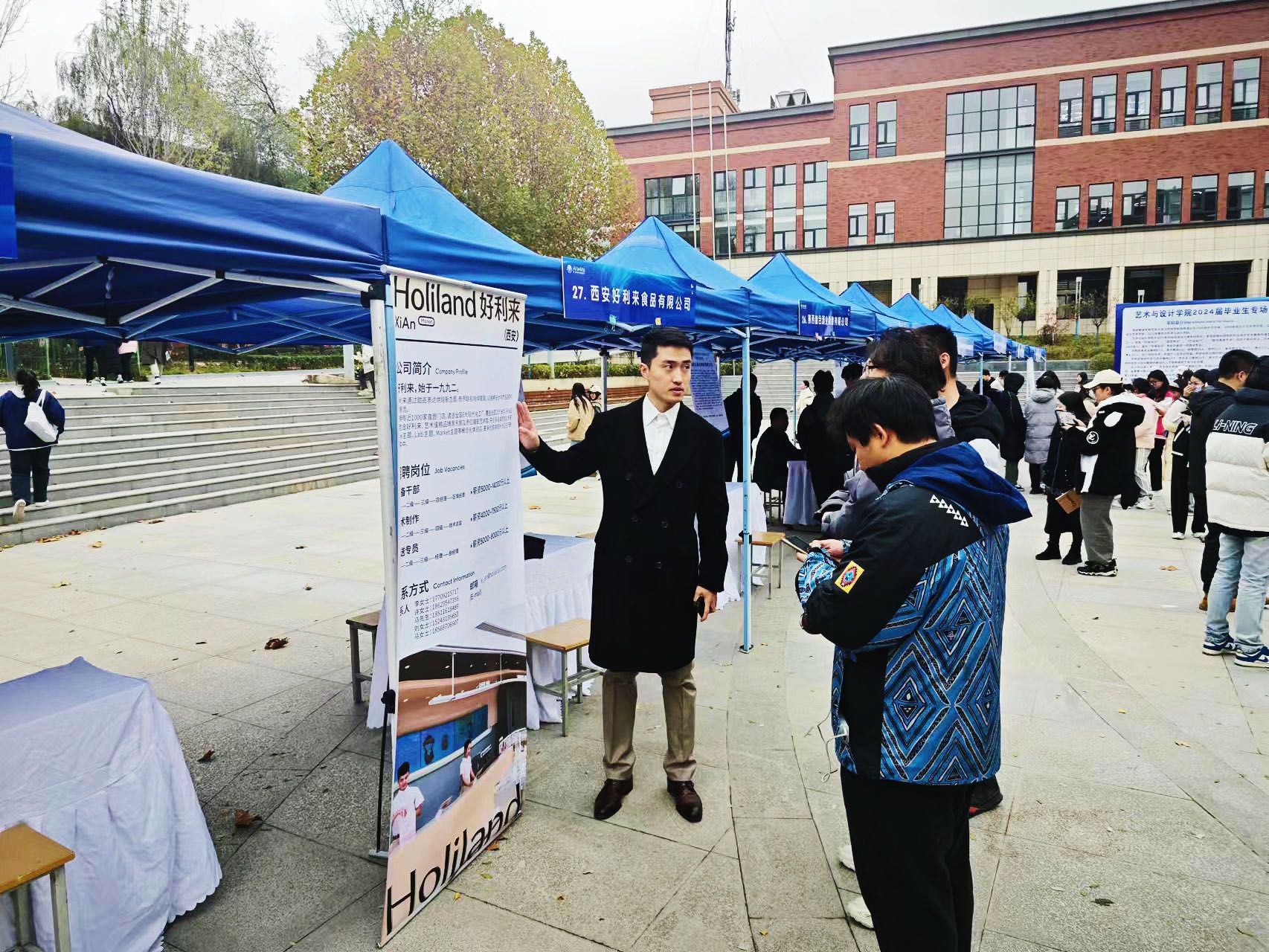 为全面贯彻党的二十大精神,落实省委省政府“三个年”工作要求和市委市政府八个方面重点工作安排部署,进一步做好毕业生就业工作,引导毕业生把握就业机会,艺术与设计学院于11月15日中午在五号楼广场开展“‘就’在金秋,‘职’面未来”活动制造企业专场招聘会。出席本次招聘会的有艺术与设计学院综合办副主任王瑛、艺术与设计学院第一党支部书记赵爱红、王勃老师以及各毕业班辅导员。