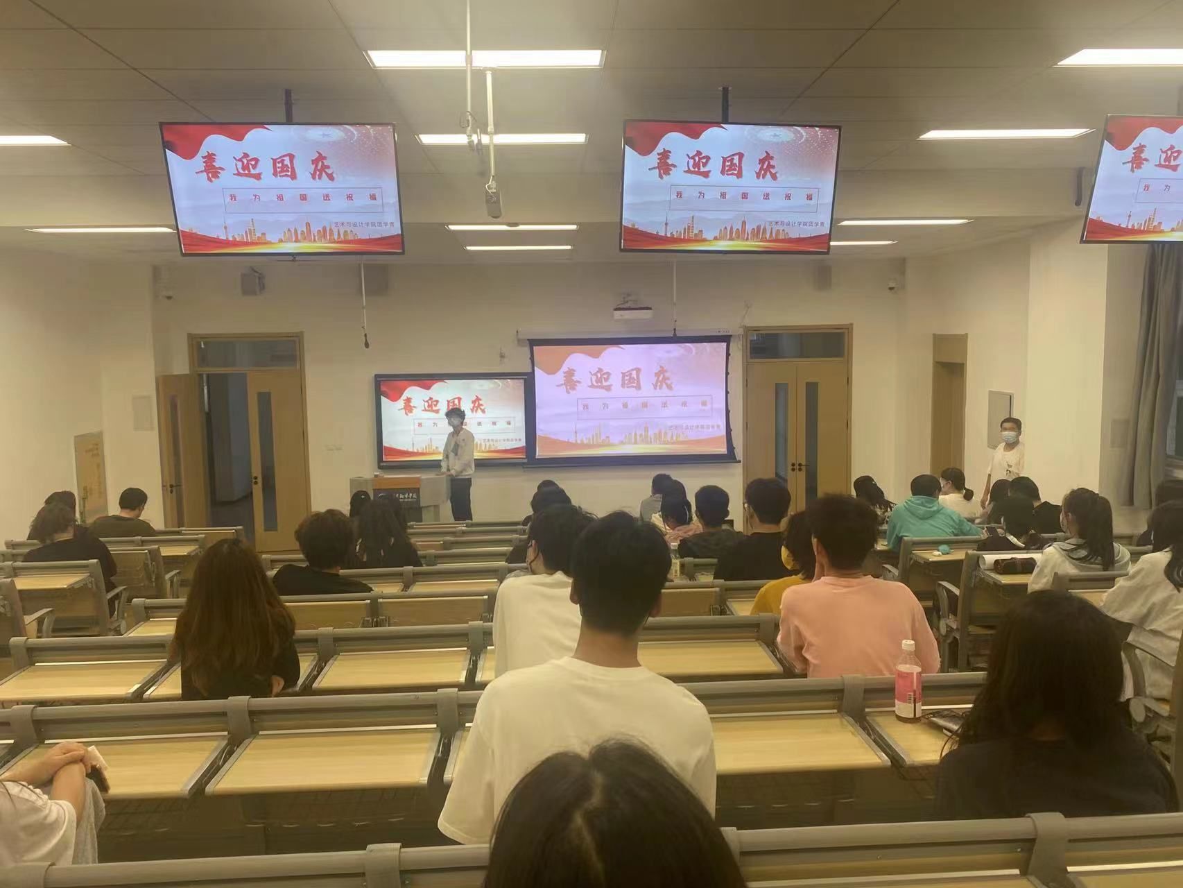 为纪念新中国成立七十三周年,响应党的号召,喜迎国庆。艺术与设计学院团总支、学生会及青年志愿者协会于9月30日中午12:10在十号楼10T11教室举办了“喜迎国庆,我为祖国送祝福”主题活动。